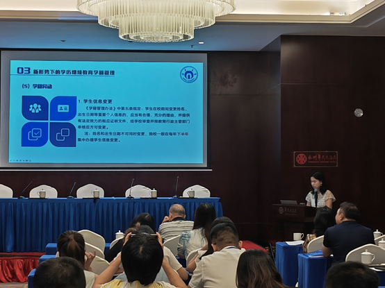 工作会议之后,由继续教育学院赵桂芝副院长主持,会议进行了三个业务专题培训。继续教育学院招生与教务办公室主任汤晓兰、校外教学点管理办公室主任彭金生和湖南世纪超星公司刘人洋分别做了《新形势下九州网页版登录入口校外教学点教学与学籍管理》《新时代下九州网页版登录入口教学点设置与管理》;《九州网页版登录入口校外教学信息化管理系统操作》专题培训。